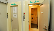 管理棟に併設して更衣室やシャワールームも完備。きれいな更衣室で着替えをしてスポーツに励んだ後は、シャワーでさっぱり。